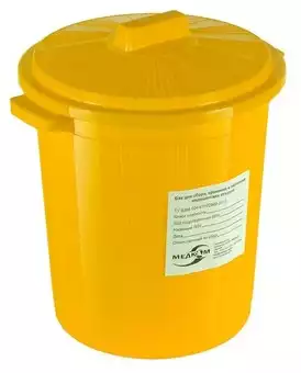 Бак 50,0л для сбора, хранения медицинских отходов (класс Б), с крышкой, цвет желтый, многоразовый, Респект ГК (РОССИЯ)