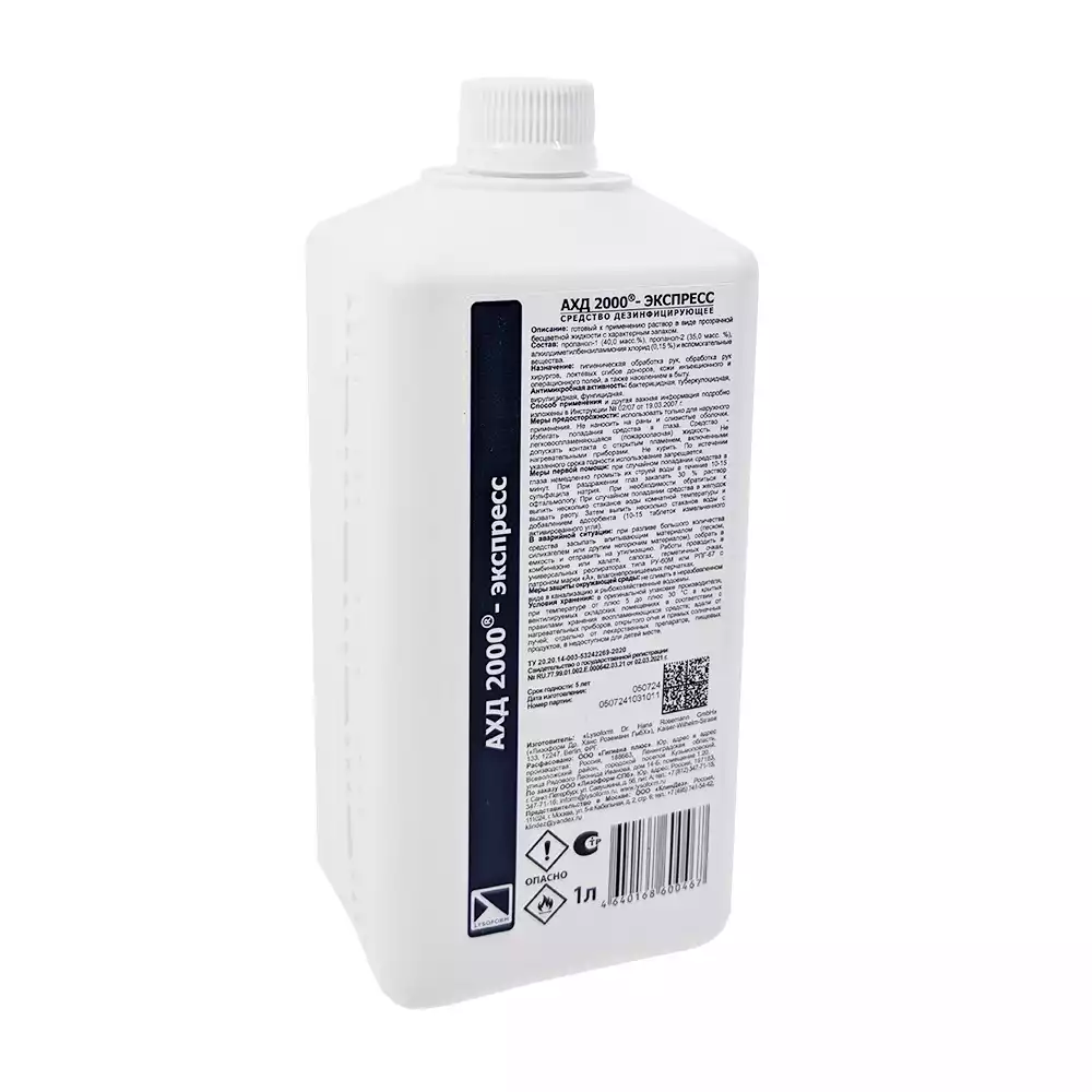 АХД 2000-Экспресс (кожный антисептик), объем 1,0л, готовый к применению раствор, Lysoform Dr.Hans Rosemann GmbH (ГЕРМАНИЯ)