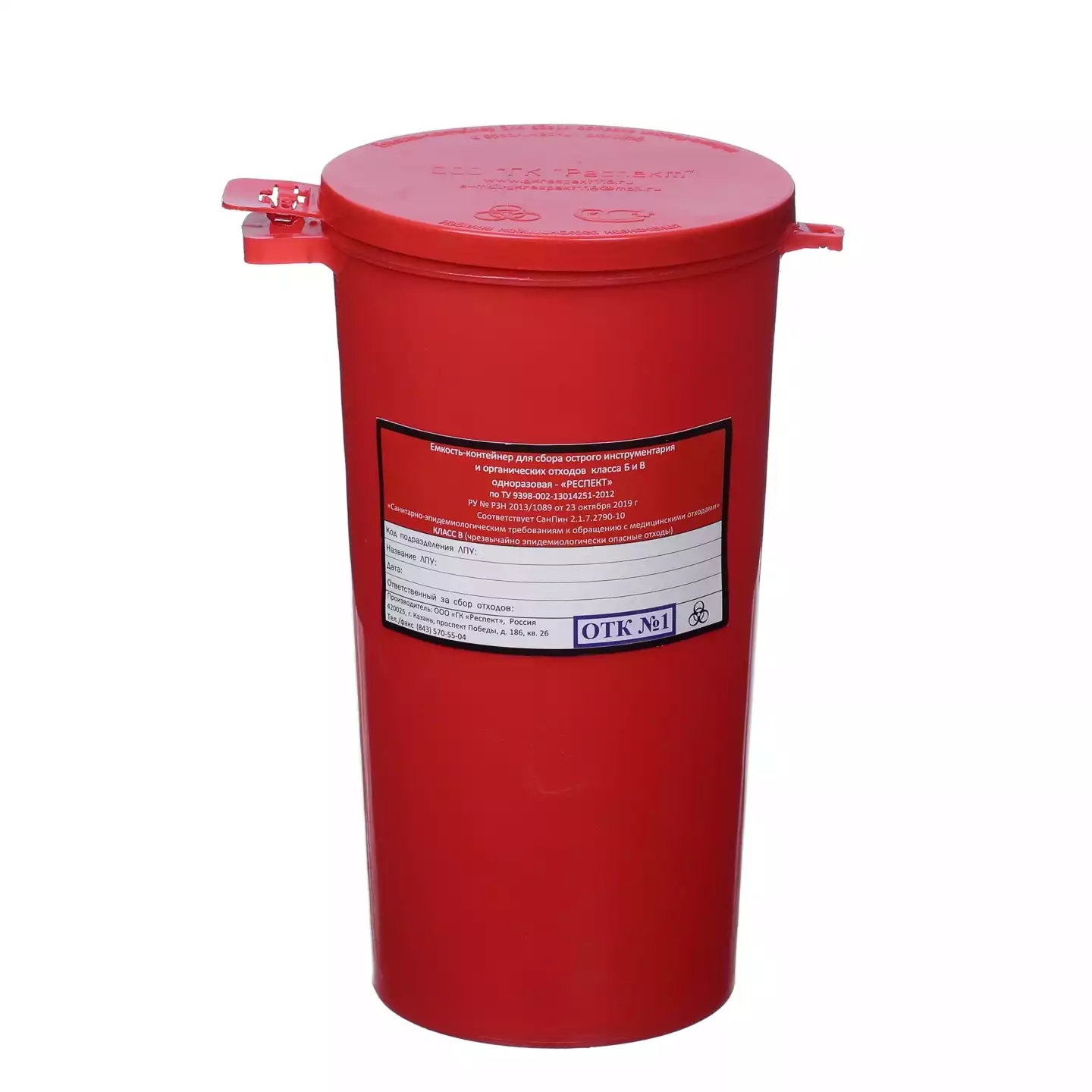 Емкость-контейнер для сбора острого инструментария (с иглосъемником), объем 1,0л (класс В), красная, одноразовая, Респект ГК (РОССИЯ)