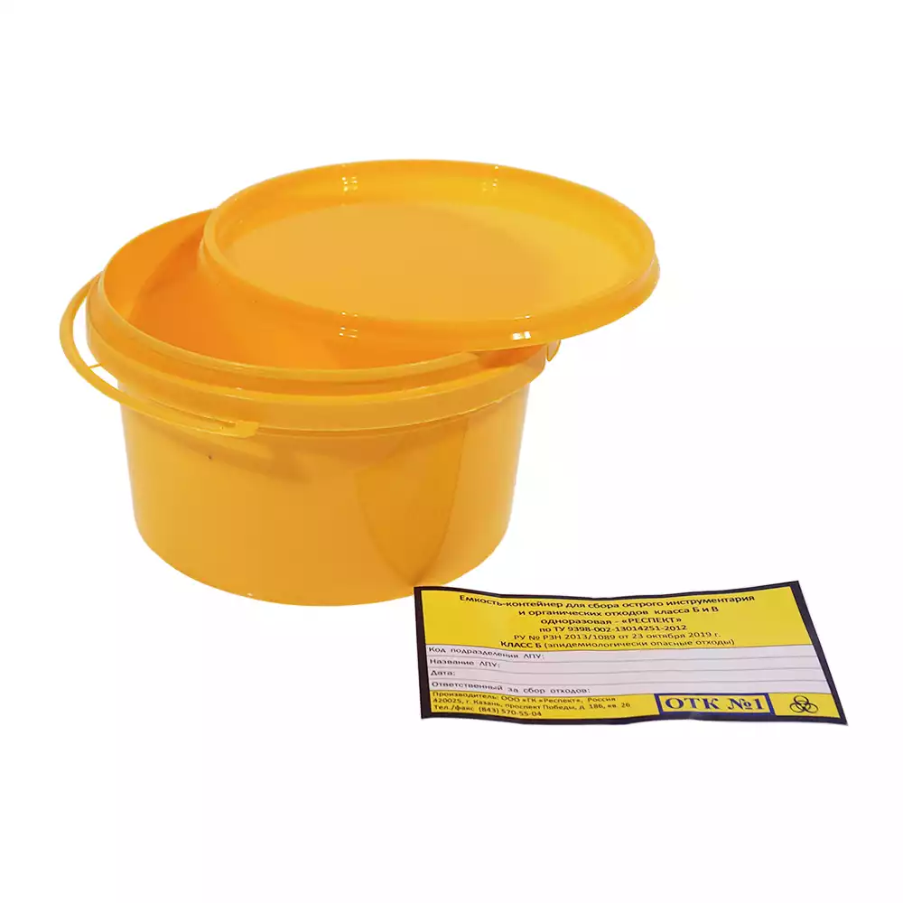 Емкость-контейнер для сбора органических отходов (класс Б), объем 1,0л, одноразовая, МедКом НПФ (РОССИЯ)