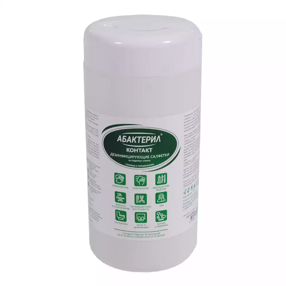 Салфетки "Абактерил - Контакт", безспиртовые дезинфицирующие, размер 13,6*17,0см, в банке № 60шт, готовые к применению, Рудез (РОССИЯ)