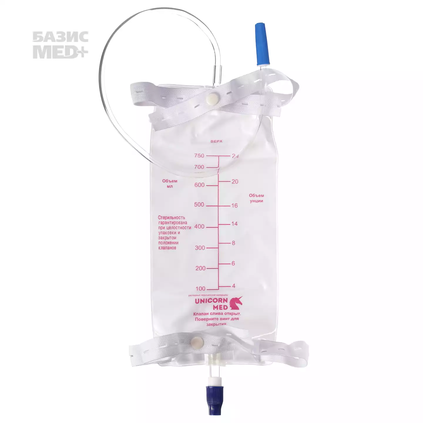 Мочеприемник носимый 750мл, с прямым сливным краном, взрослый, трубка 50см, одноразовый, стерильный, Changshu Kangbao Medical Appliance Factory (КИТАЙ)