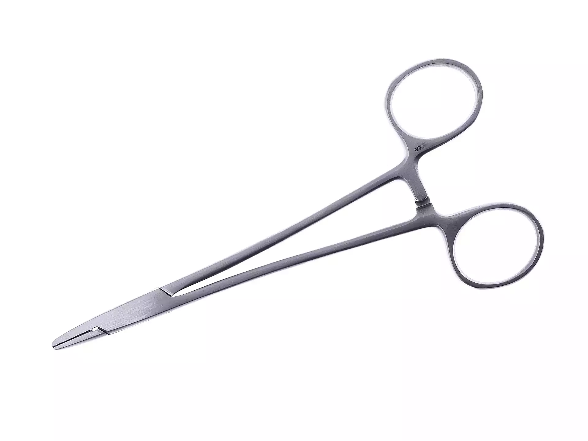 Иглодержатели бывают разных размеров и форм, в зависимости от типа операции и размера иглы. Могут быть прямыми или изогнутыми, с зубчатыми или гладкими губками.