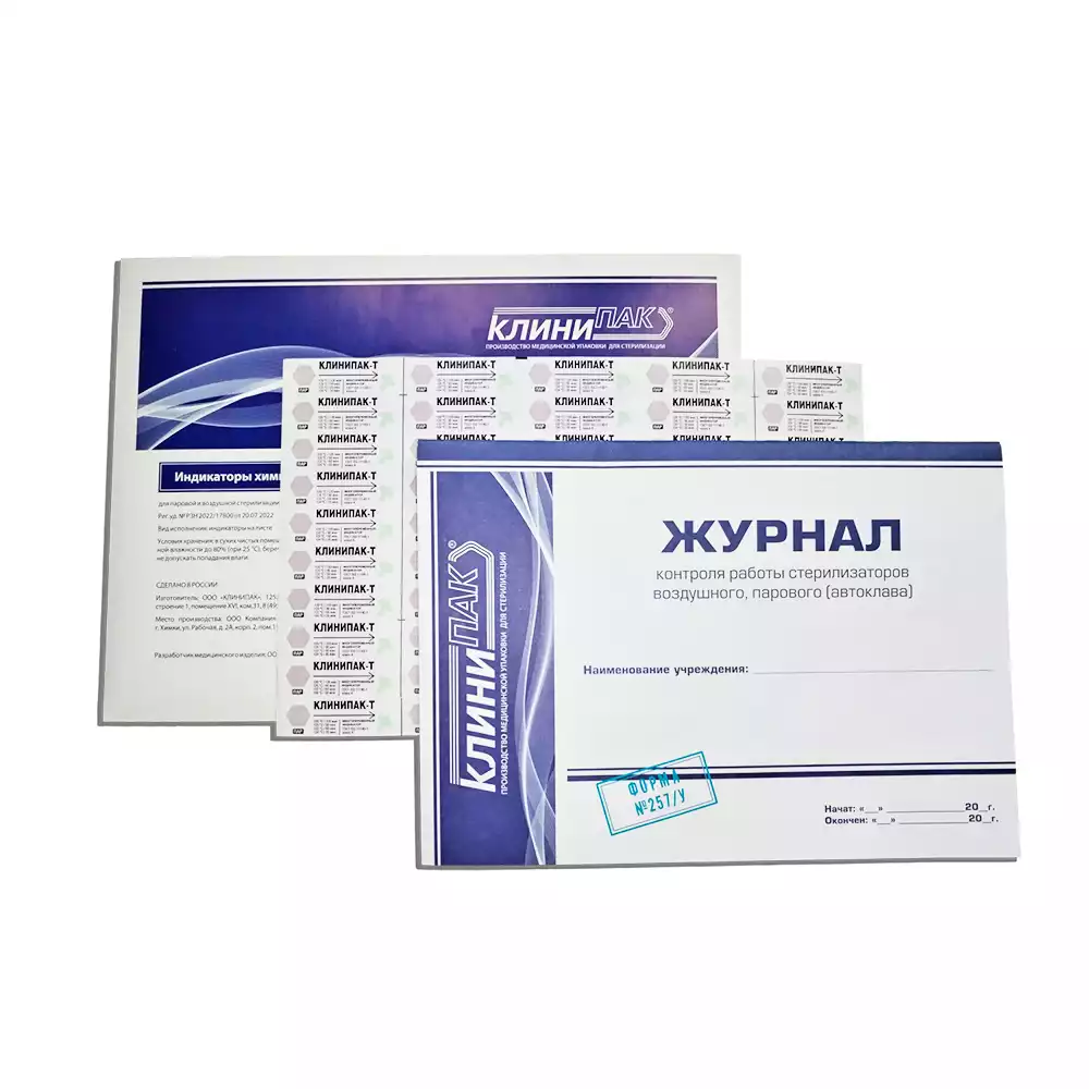 Индикатор стерилизации КЛИНИПАК-Т универсальный, 4 класс (160C/150мин.,180C/60мин.,200C/30мин), самоклеющийся, упаковка 1000 тестов, с журналом, для контроля внутри и снаружиКЛИНИПАК (РОССИЯ)