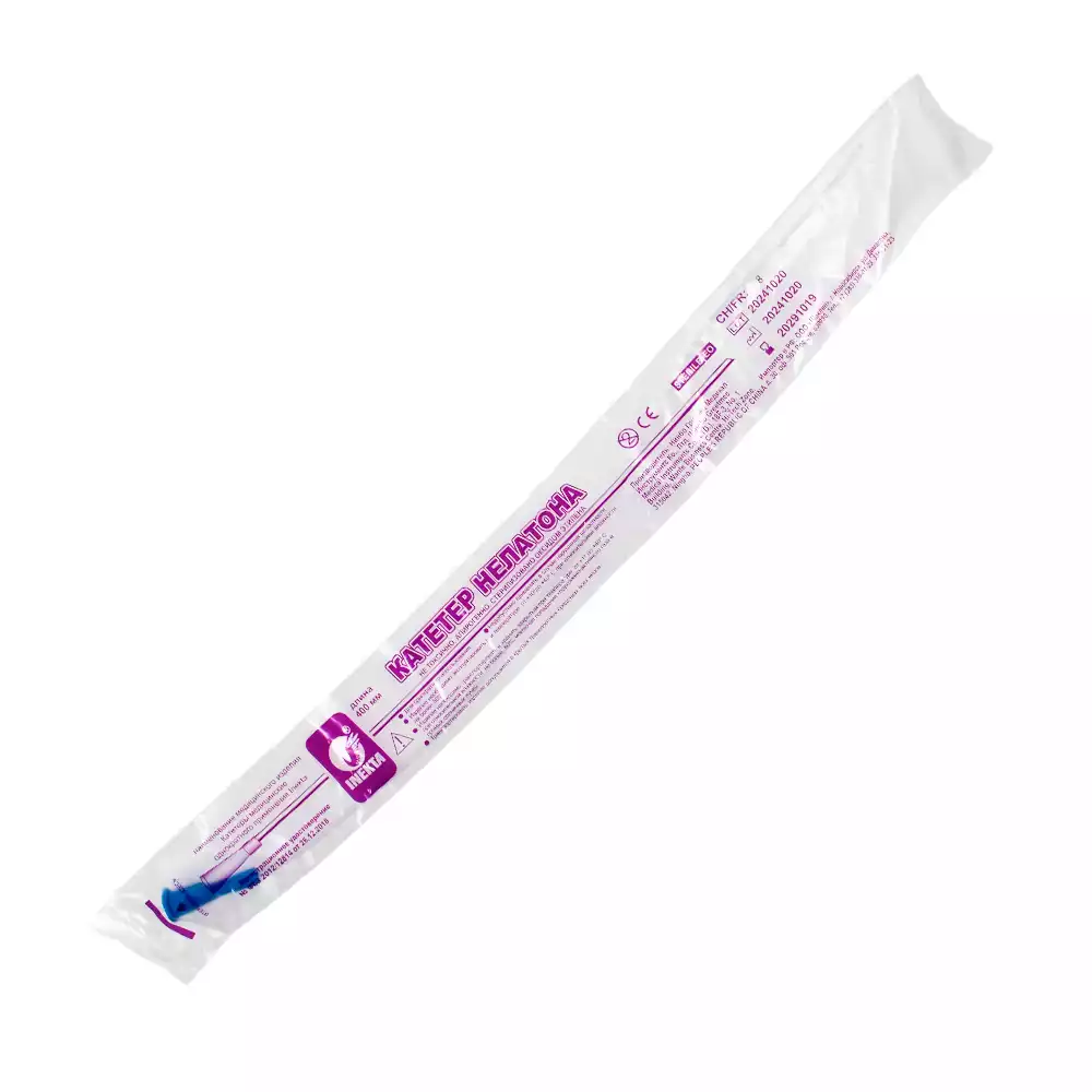 Катетер Нелатона мужской CH-08, длина 40см, диаметр 1,7/2,7мм, цвет голубой, стерильный, Ningbo Greetmed Medical Instruments Co Ltd (КИТАЙ)