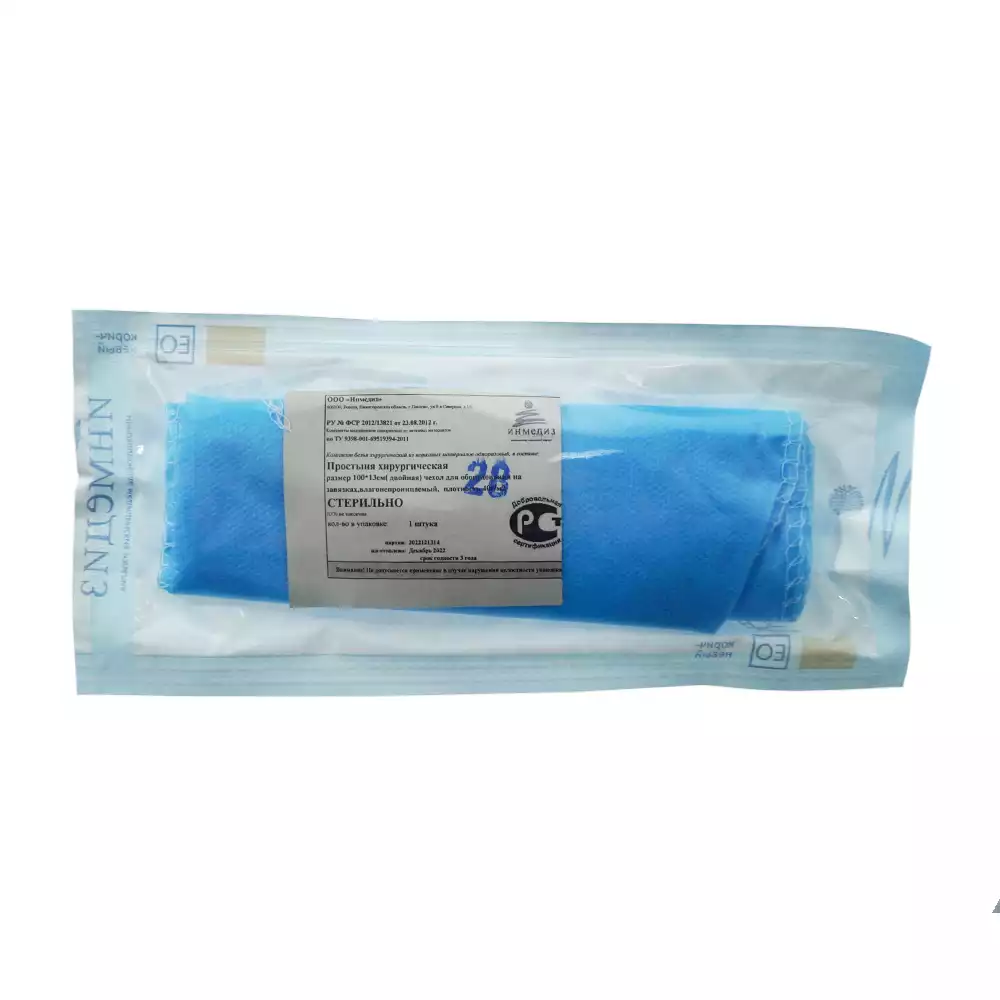 Простыня 70*80см, материал СМС 42м2, стерильная, голубая, с РУ, Инмедиз (РОССИЯ)