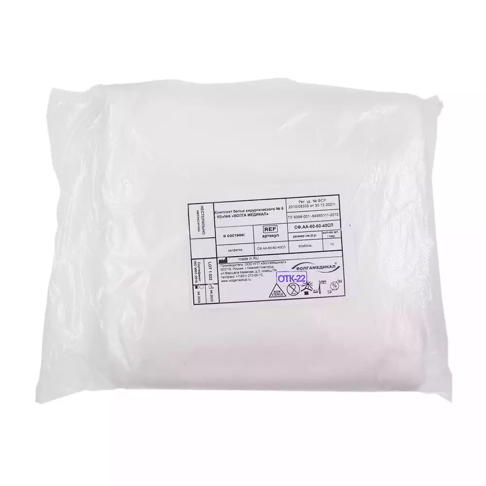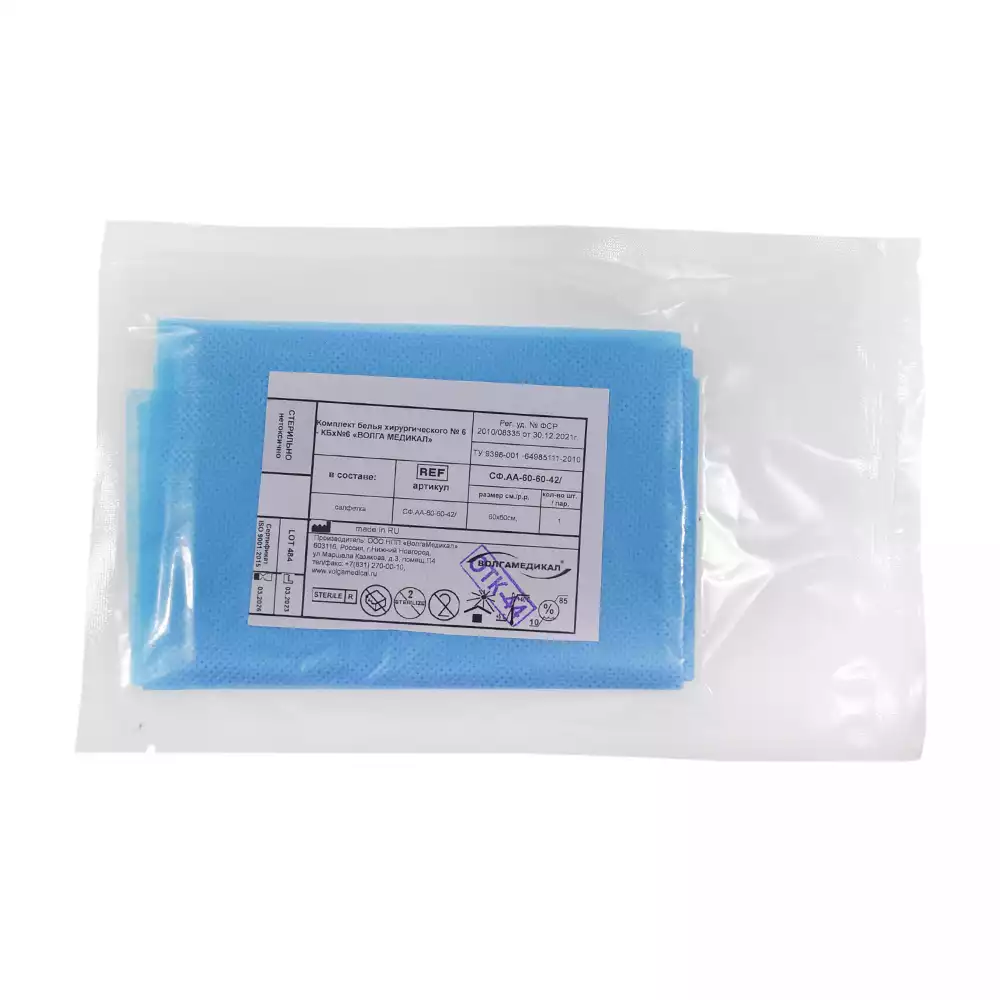 Салфетка хирургическая, размер 60*60см, материал СМС 42г/м2, стерильная, Волга Медикал НПП (РОССИЯ)