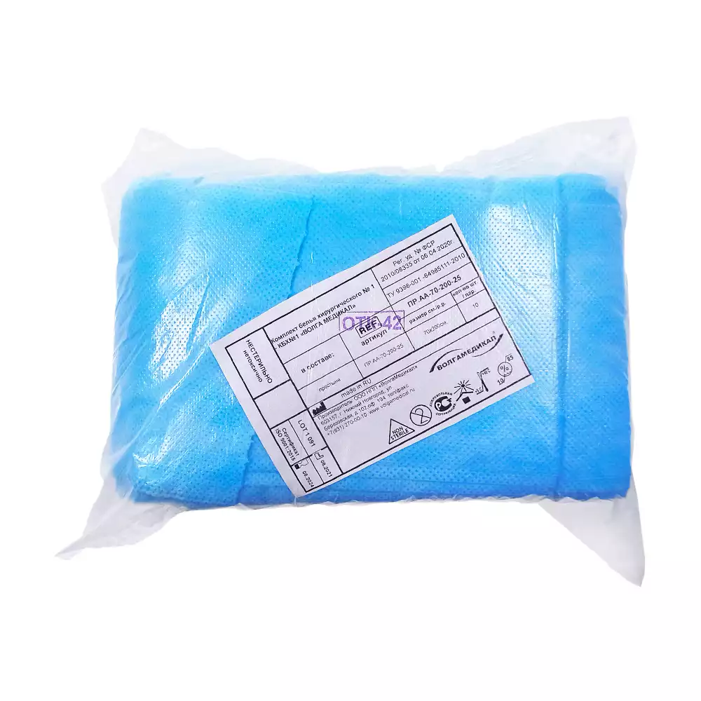 Простыня 70*200см, материал Спанбонд 20/м2, нестерильная, голубая, Волга Медикал НПП (РОССИЯ)