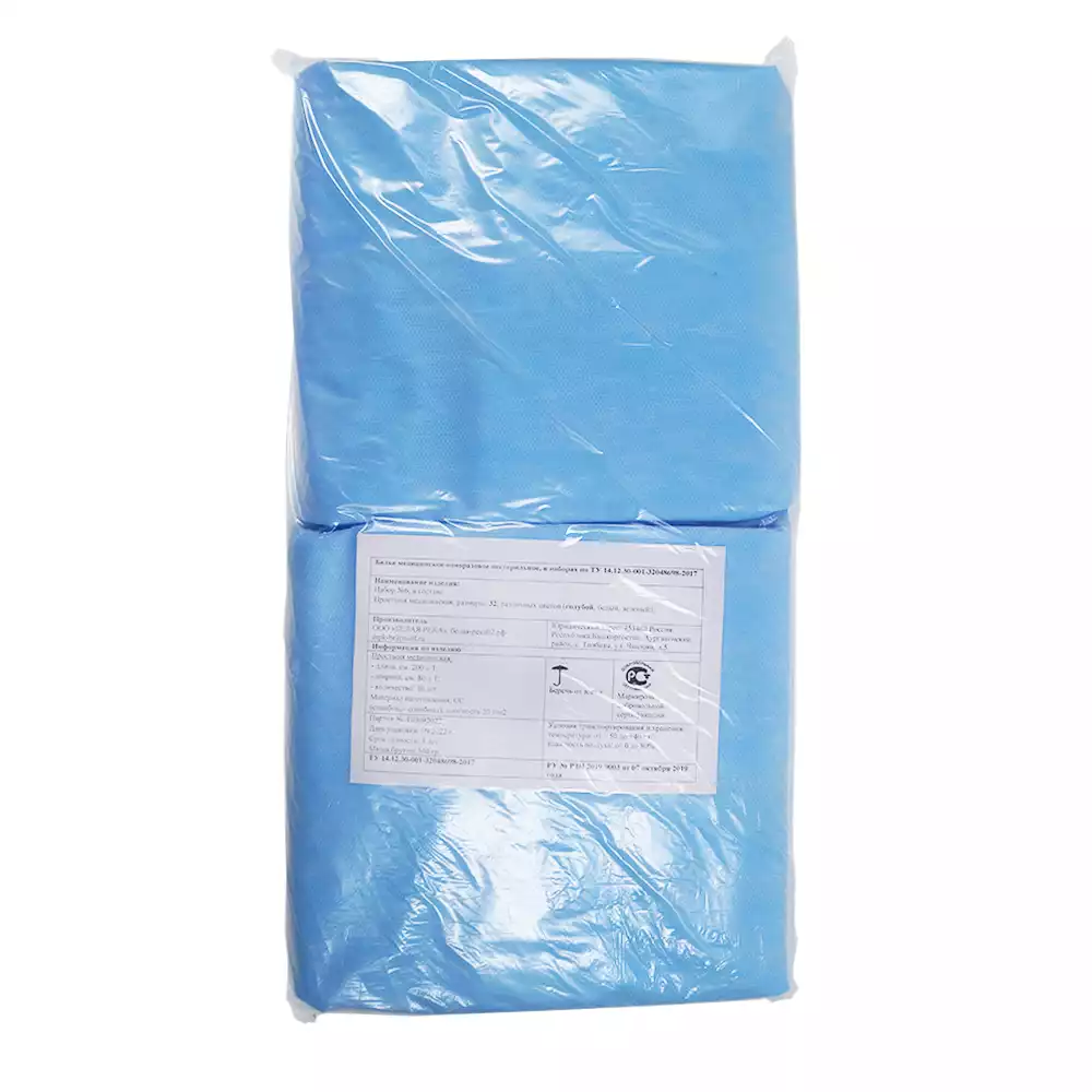 Простыня 80*200см, материал Спанбонд 20г/м2, нестерильная, голубая, групповое сложение, Белая река (РОССИЯ)
