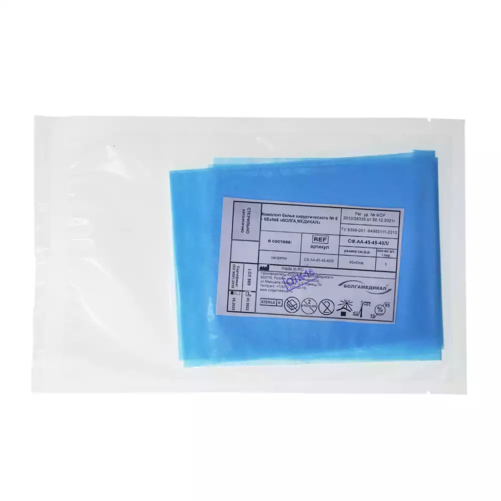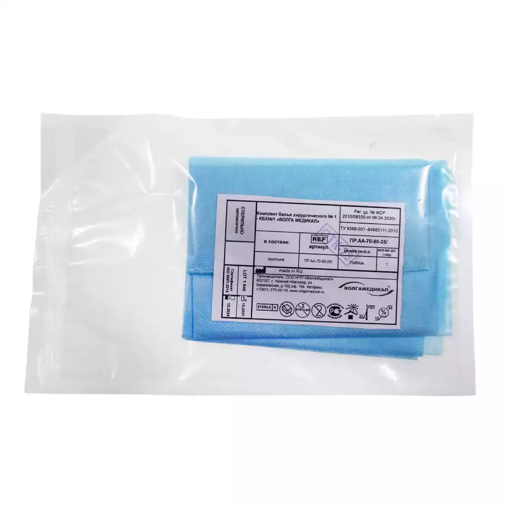Простыня 70х80см, СМС 25г/м2, хирургическая, стерильная, голубая, Волга Медикал НПП (РОССИЯ)