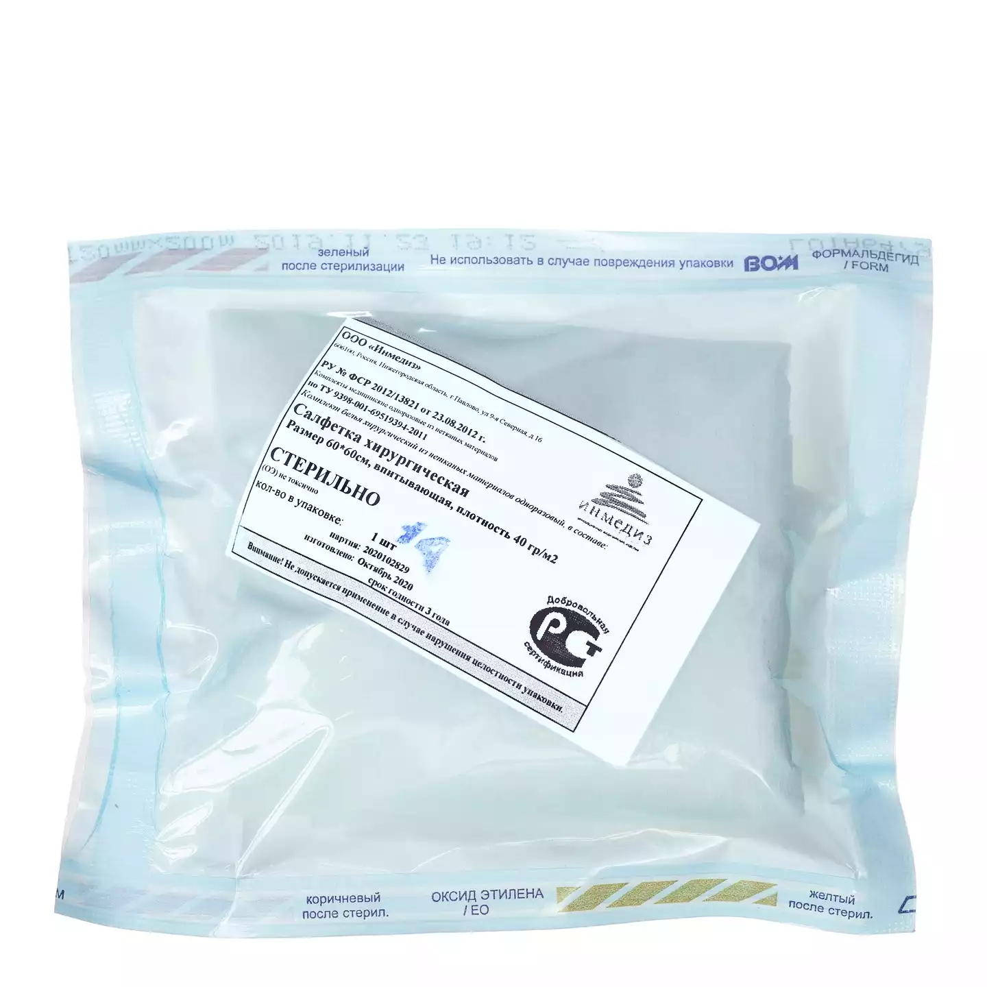 Салфетка 60*60см, материал спанлейс 40г/м2, стерильная, белая, с РУ, Инмедиз (РОССИЯ)