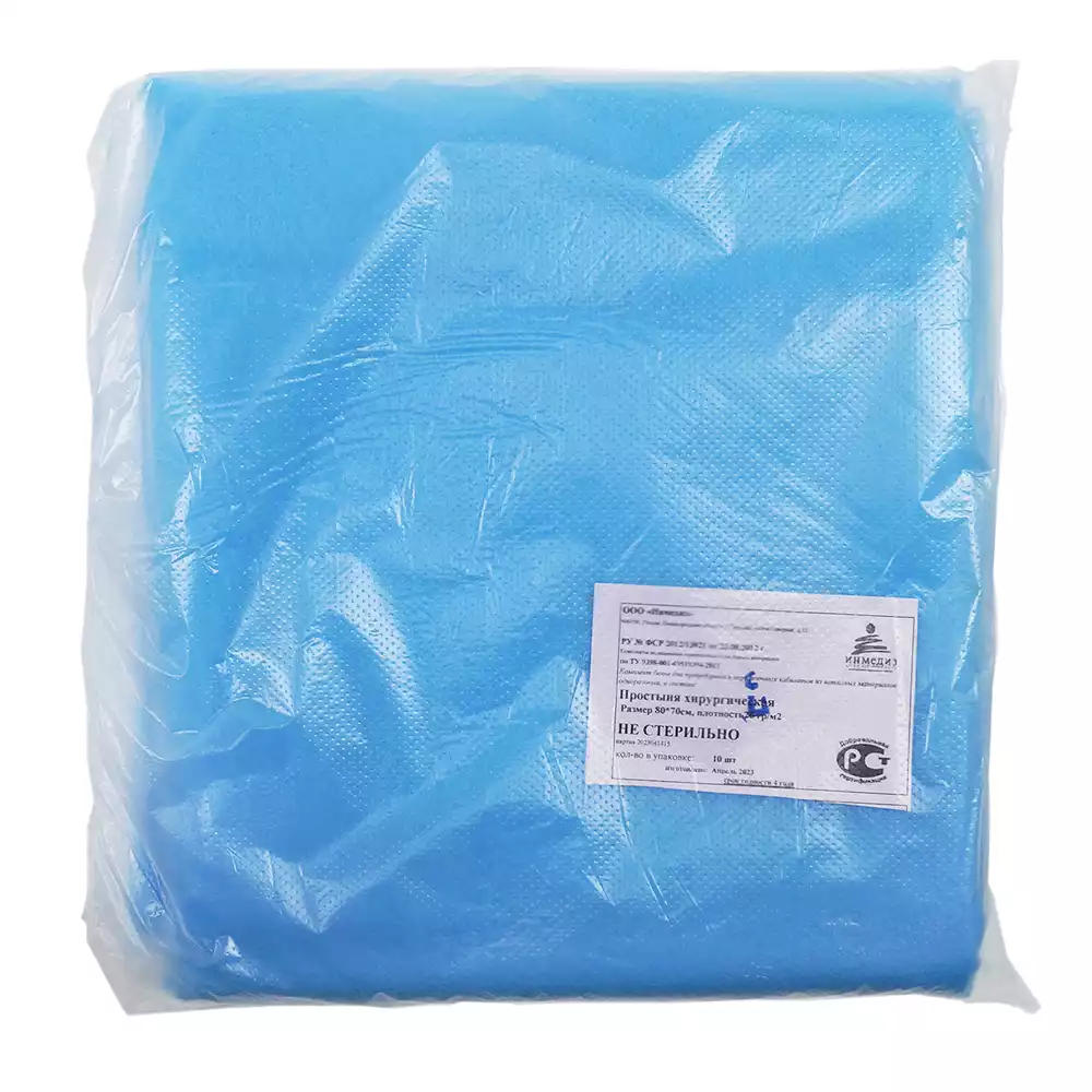 Простыня 70*80см, материал СМС 42/м2, нестерильная, голубая, Инмедиз (РОССИЯ), 10 шт