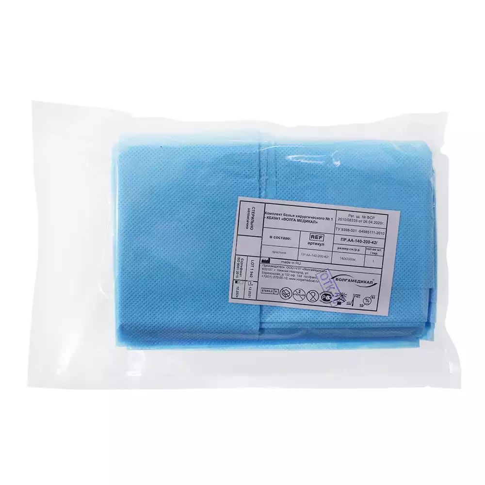 Простыня 140*200см, материал СМС 42г/м2, стерильная, голубая, Волга Медикал НПП (РОССИЯ)