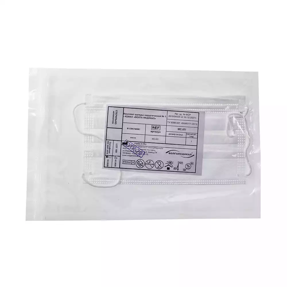 Маска медицинская 3-х слойная, с носовым фиксатором 10см, на резинке, стерильная, голубая, инд.упак, Волга Медикал НПП (РОССИЯ)