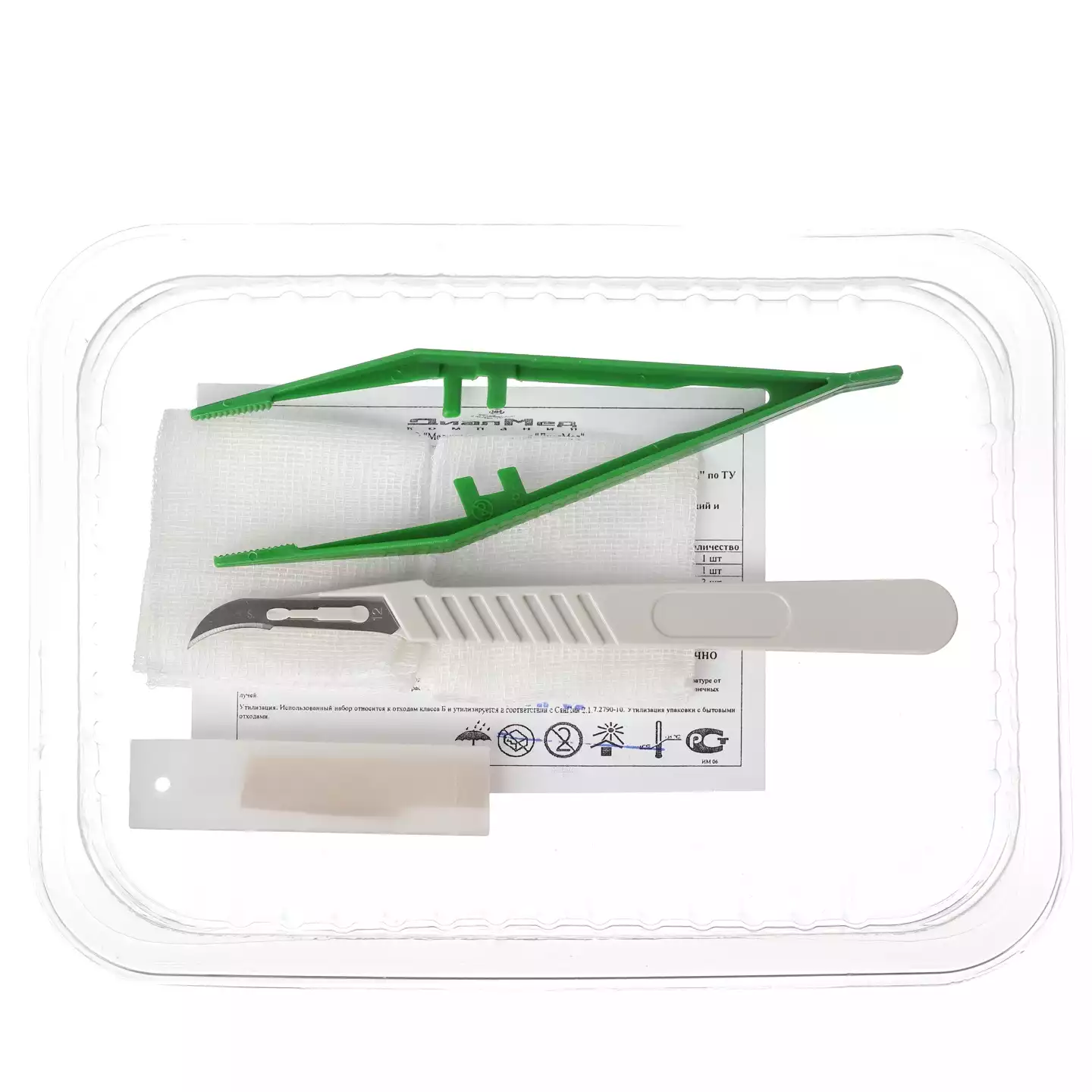 Комплект "ДиалМед" для снятия швов №1 (2 салфетки, нож, пинцет), одноразовый, стерильныйДиалМед МК (РОССИЯ)