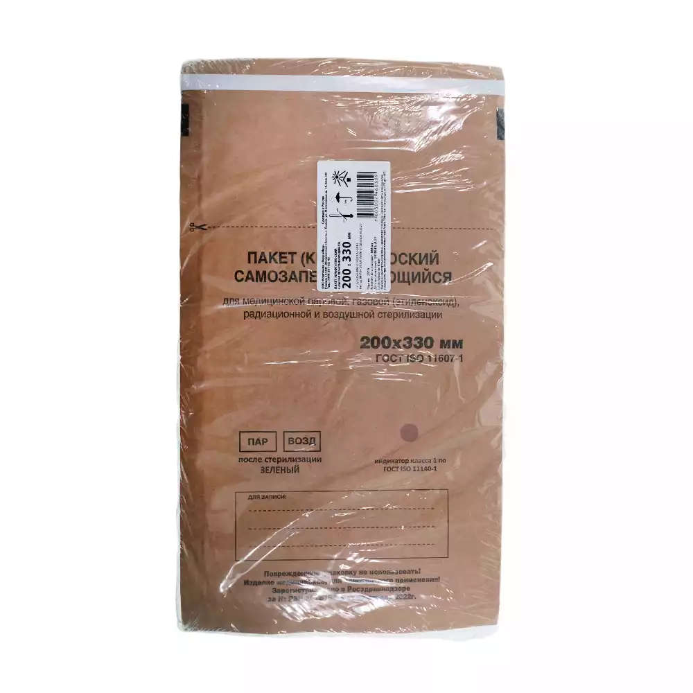 Пакет ТерраМед, размер 200*330мм, бумажный, крафт, самоклеющийся, упаковка 100шт, ООО Террамед (РОССИЯ)