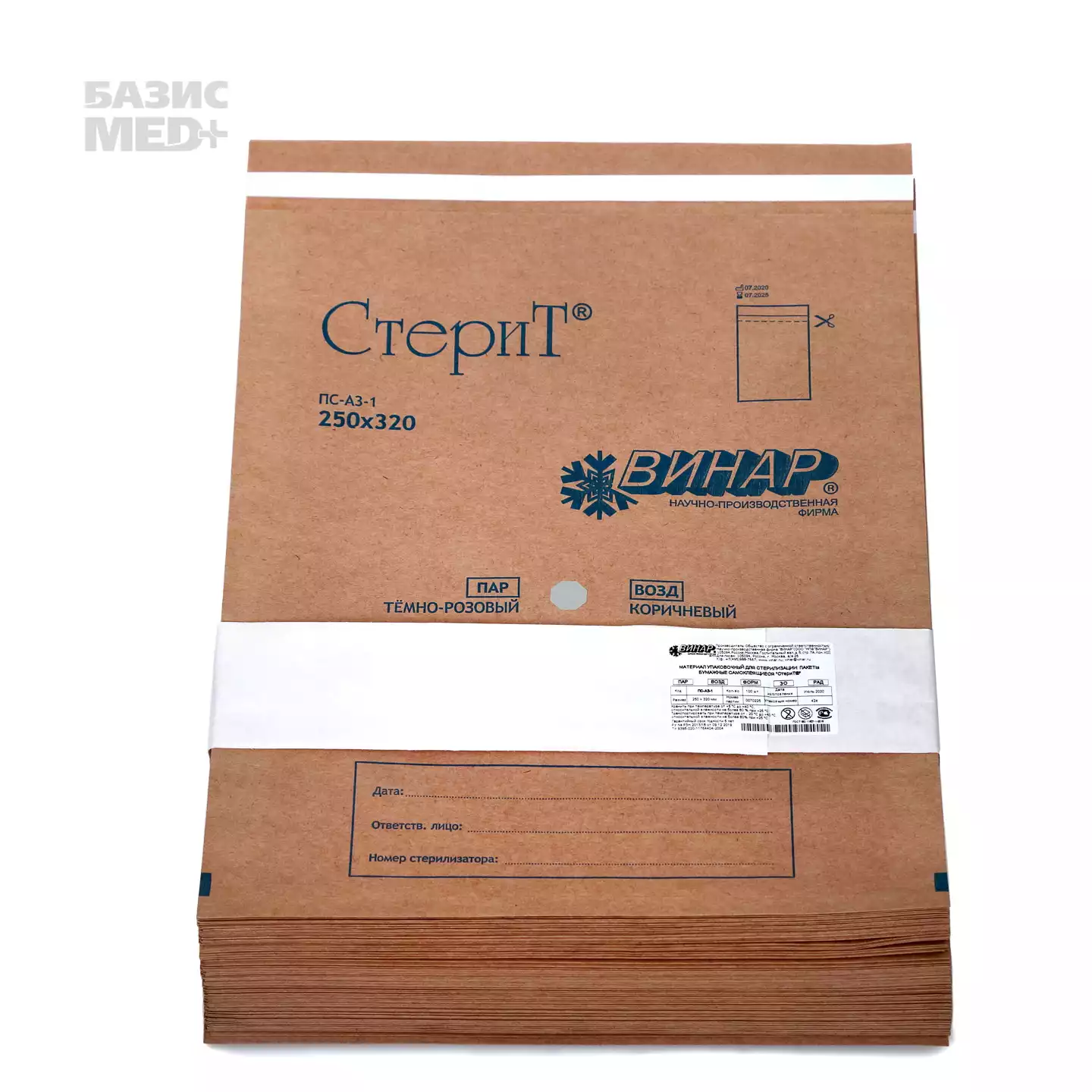Пакет СтериТ, размер 150*300мм, бумажный, крафт, самоклеющийся, упаковка 100шт, Винар НПФ
