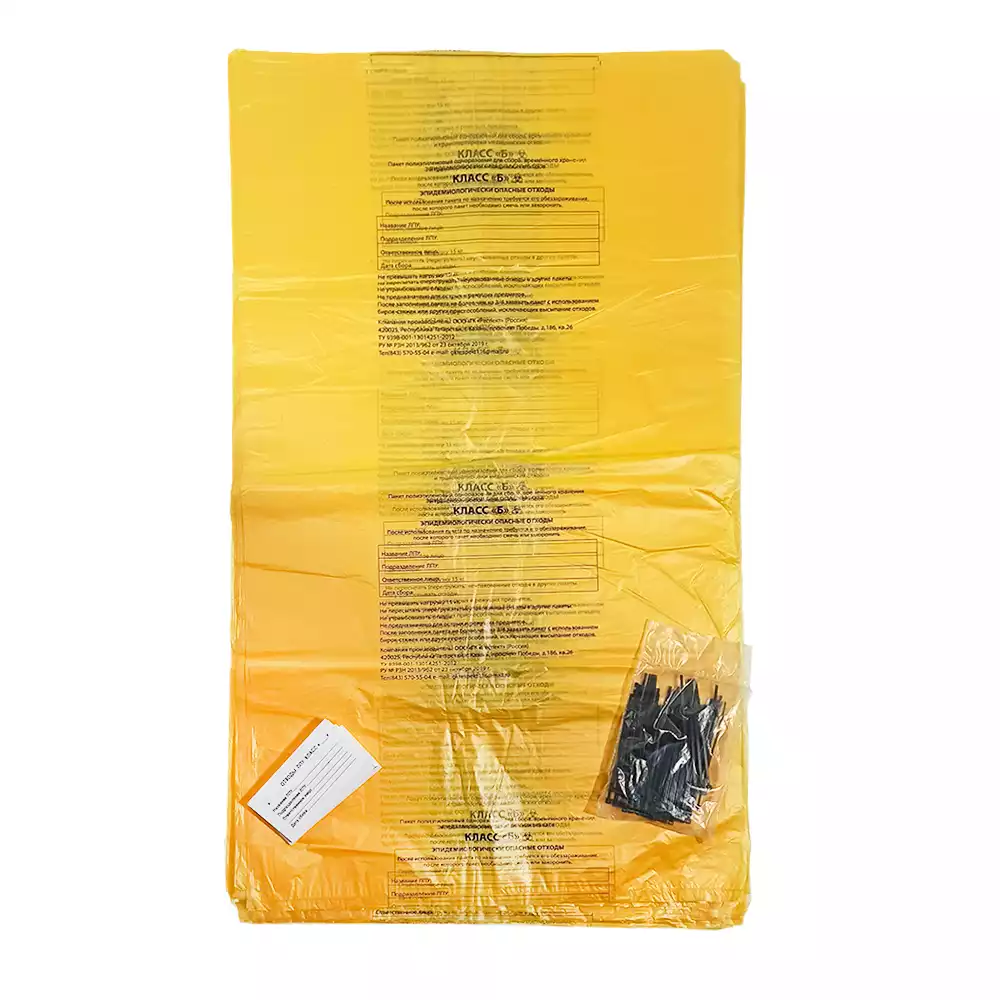 Пакет для сбора медицинских отходов, класс Б (желтый), размер 600*1000мм, объем 90-100л, плотность 13 микрон, МедКом НПФ (РОССИЯ), 100 шт