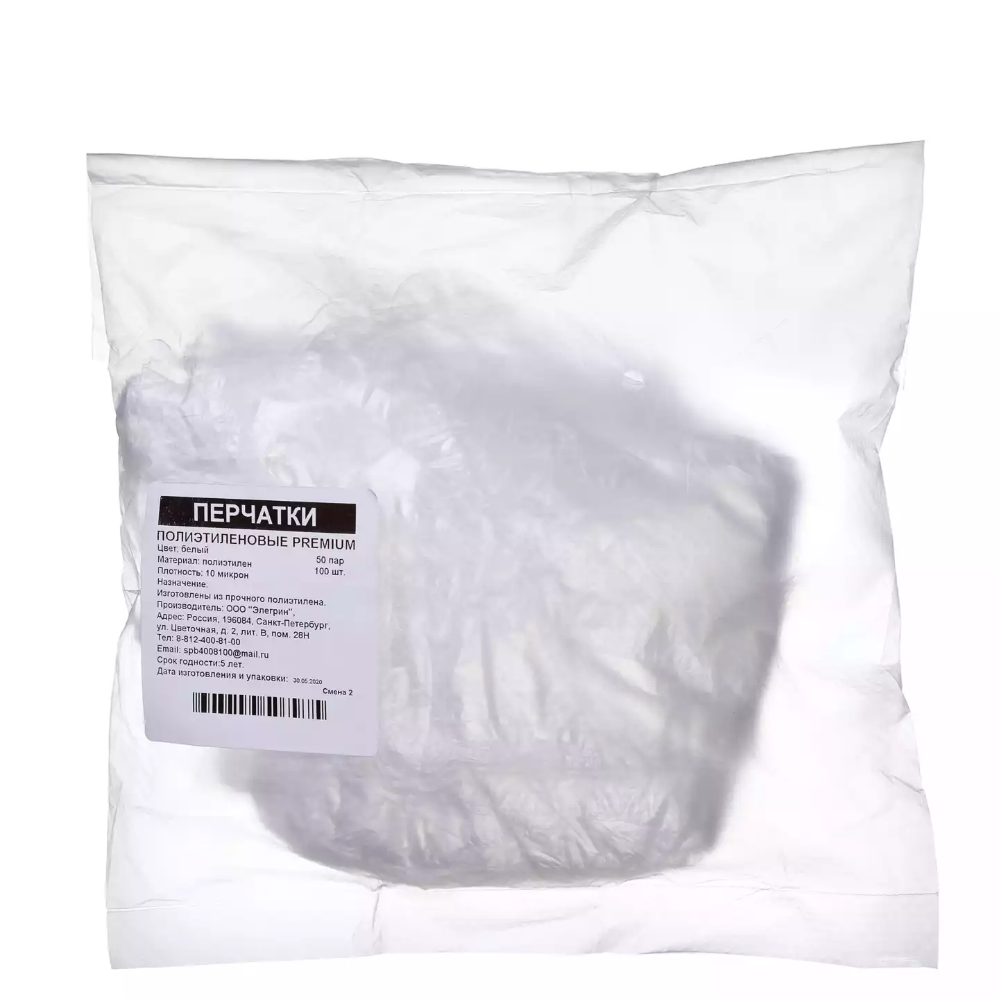 Перчатки полиэтиленовые одноразовые прозрачные р.M, 8 мкр, PREMIUM, 50 пар/упаковкаЭлегрин (РОССИЯ), 50 пар