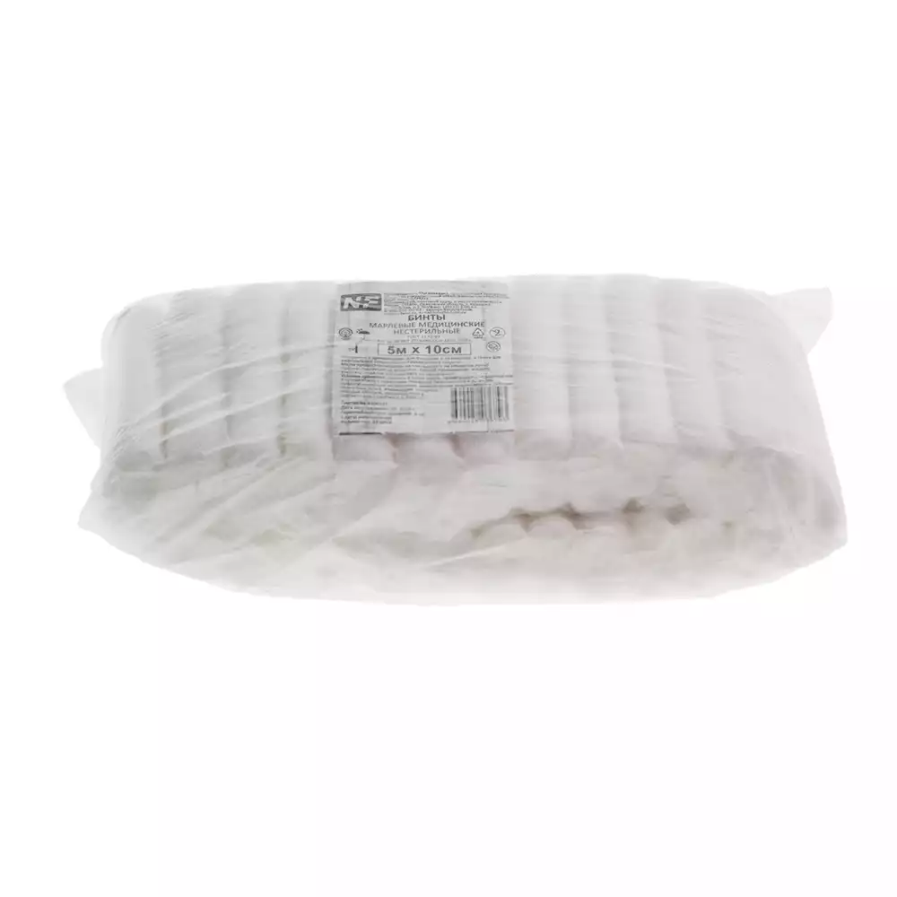 Бинт марлевый, размер 10см*5м, плотность 36г/м2, нестерильный, Навтекс ХБК (РОССИЯ), 20 шт