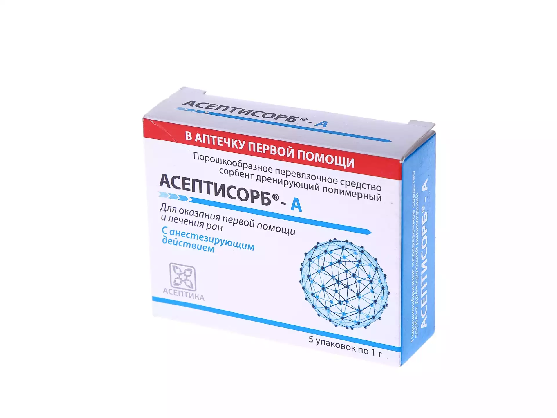АСЕПТИСОРБ-А сорбент дренирующий полимерный стерильный, с местным анестетиком анилокаином, упаковка 5штАсептика М.К. (РОССИЯ)
