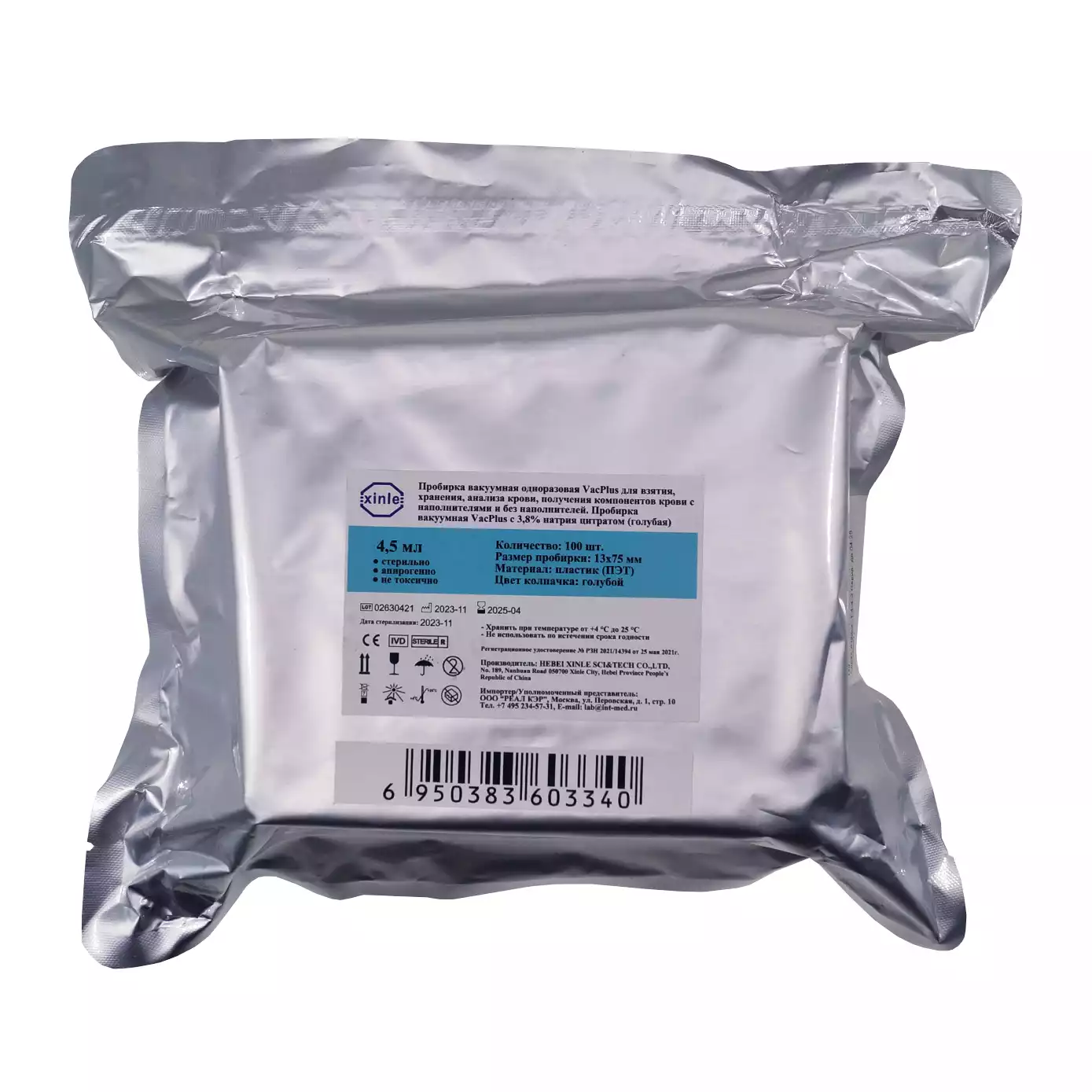 Пробирки VacPlus, объем 4,5 мл, цитрат натрия 3,8%, размер 13х75мм, пластиковые, голубойHebei Xinle Sci&Tech Co Ltd (КИТАЙ)