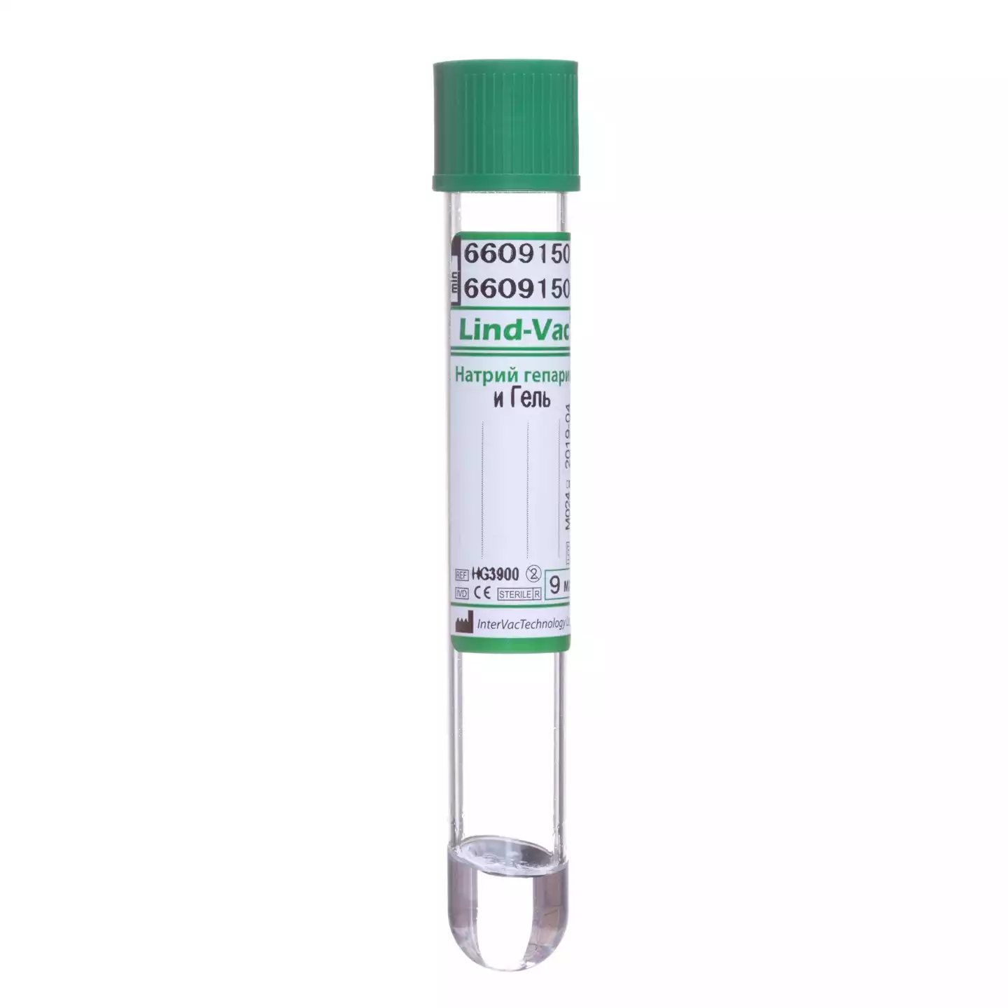 Пробирка вакуумная пластиковая Lind-Vac для взятия крови с натрий гепарином и разделительным гелем, объем 9 мл, размер 16*100 мм, цвет крышки зеленыйOÜ InterVacTechnology (ЭСТОНИЯ), 50 шт