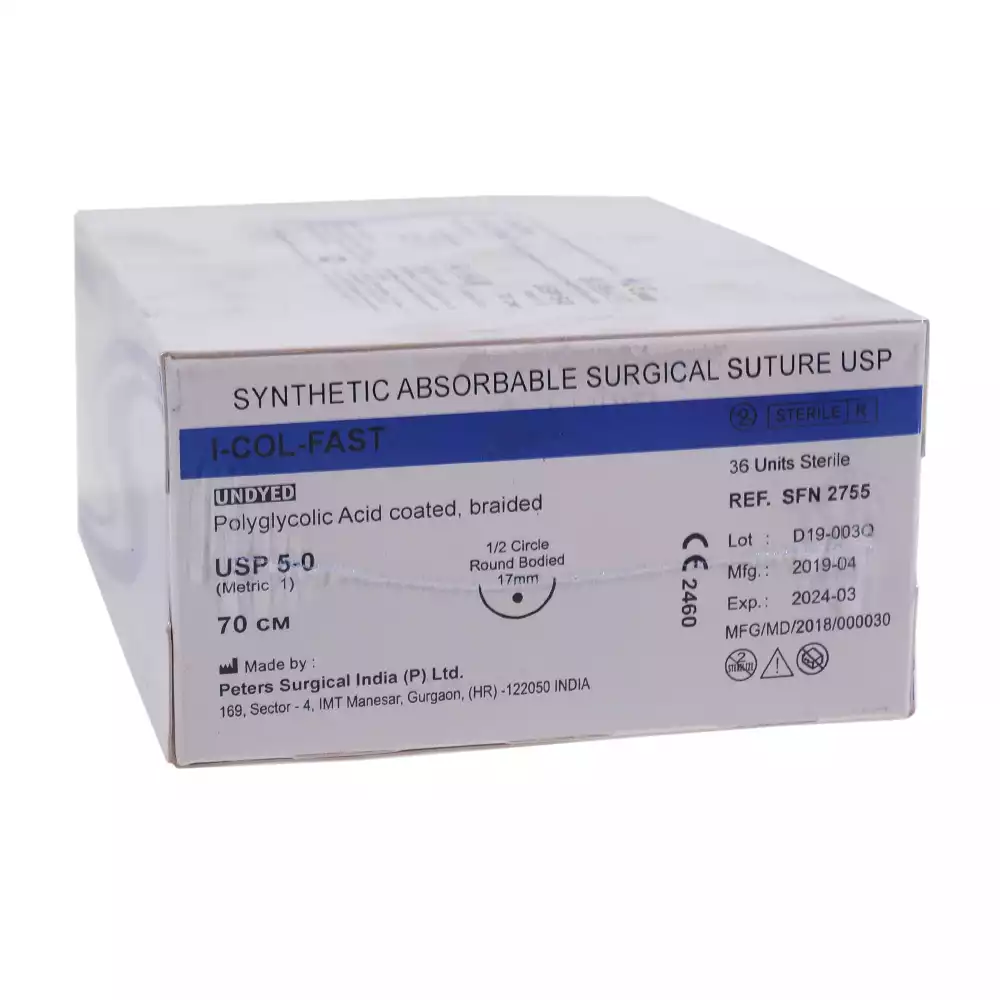 Ай- кол 5/0 (1), длина нити 70см, игла 1/2 круглая колющая 17мм, упаковка 36шт, SFN2755Peters Surgical (ИНДИЯ)