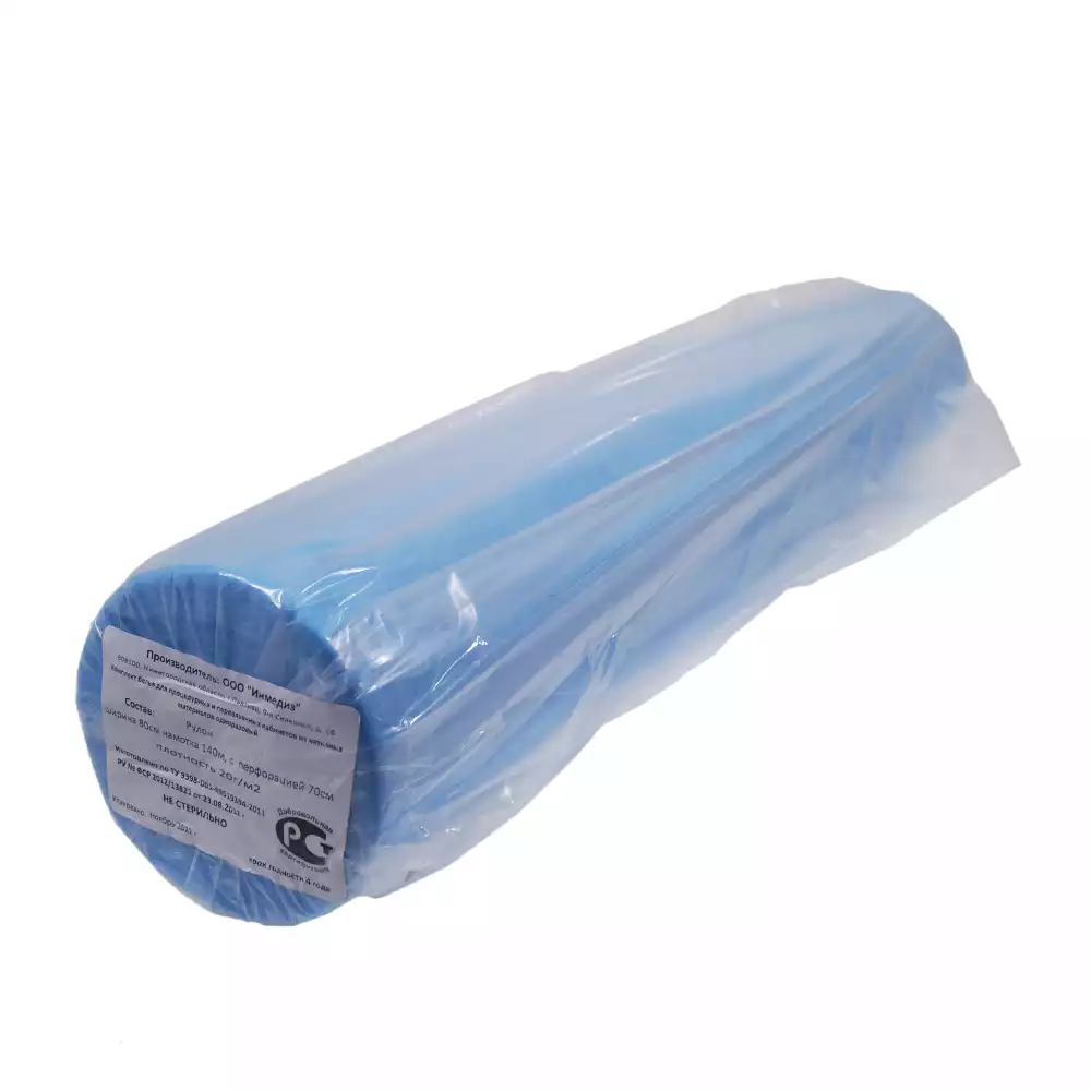 Рулон гигиенический, размер простыни 70см*80см, материал СМС 20г/м2, с перфорацией №200, голубой, с РУ