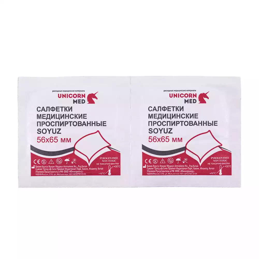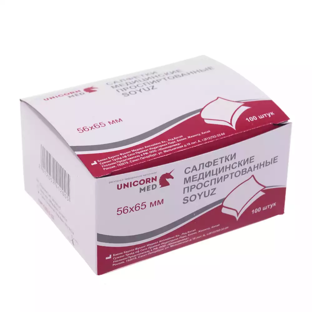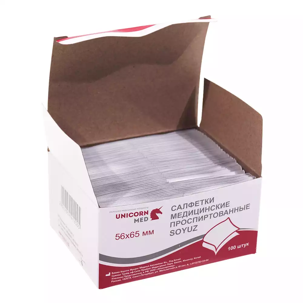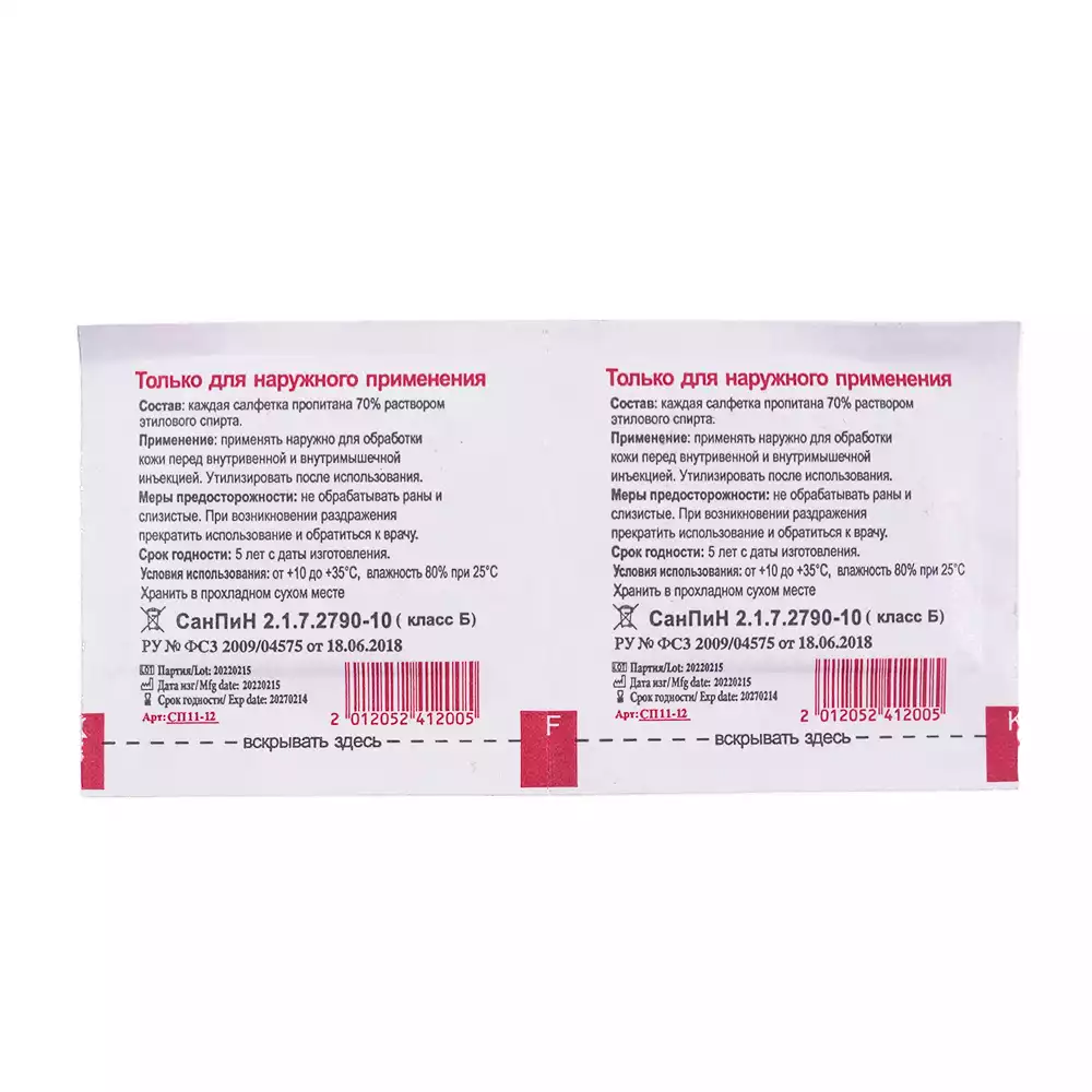 Салфетка спиртовая антисептическая для инъекций, размер 56*65мм, 70% этиловый спирт, 100 шт